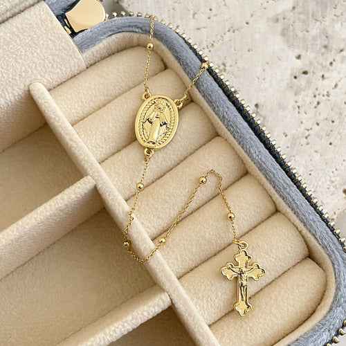 Colar Terço Noiva Dourado Delicado Banhado A Ouro 18k