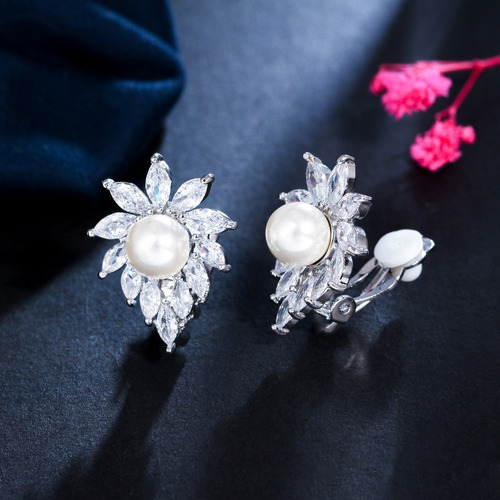 Brinco banhado a ouro branco com pedras de zircônia e pérola. (MODELO DE PRESSÃO - sem furo) Semi joia de ótima qualidade. 2,2 cm de comprimento. 1,3 cm de largura. Ideal para noivas, madrinhas, debutantes, formaturas e festas em geral. Uma linda peça para ser usada nas ocasiões mais importantes de sua vida. Simplesmente LINDO! Acompanha caixinha de presente. Produto a pronta entrega.