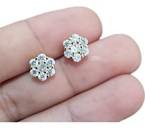 Brinco Infantil Flor Pedra Zirconia Dourado Folheado A Ouro