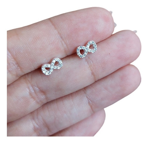 Brinco Infantil Infinito Pedra Zirconia Dourado Prata 2 Furo