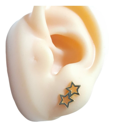 Brinco pequeno com dupla de estrelas. Tamanho: 12 mm Serve para crianças e para segundo furo.