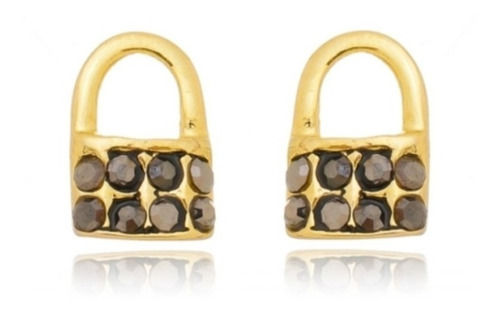 Brinco Pedra Hematita Cadeado Pequeno 2 3 Furo Folheado Ouro