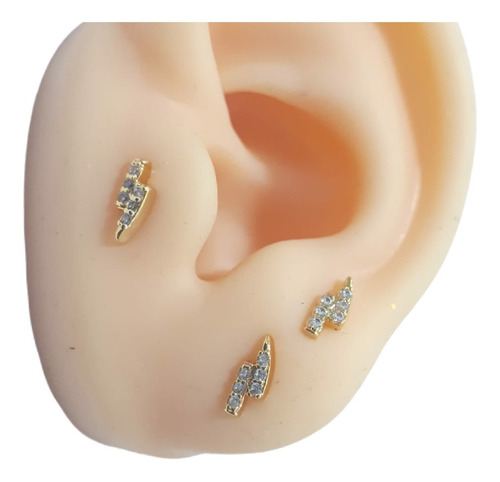 Brinco folheado a ouro 18k com pedras de zircônia. Modelo de raio. 8 mm de comprimento. Ideal para crianças, daminhas, 2 furo, etc. Produto a pronta entrega.
