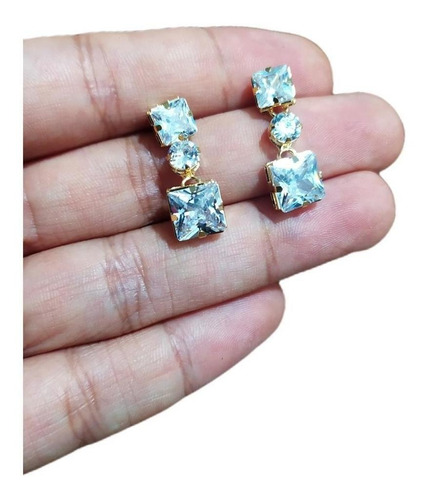 Brinco Pequeno Pedra Zirconia Dourado Pendurado Festa Noiva