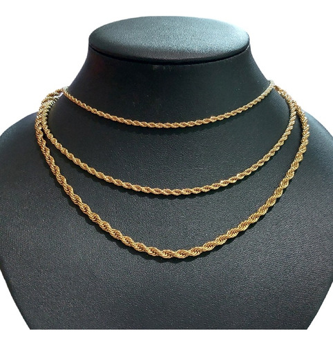 Corrente unissex, tipo cordão baiano. Temos vários tamanhos e espessuras, escolha no campo indicado. Aço inox folheada ouro. O aço inox não fica preto. Como qualquer peça folheada, o banho de ouro pode sair com o tempo, no entanto, quando a peça é confeccionada em aço inox esse banho tem maior durabilidade. Mesmo se o banho desbotar, a peça nunca ficará preta, pois o aço inox não oxida e, portanto, a peça pode clarear com o tempo, ficando na cor original do aço (prata), e nunca perderá o brilho.