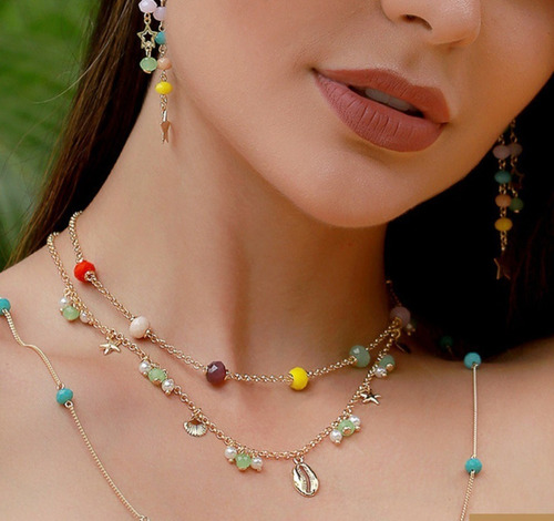 Colar Fundo Do Mar Concha Búzios Estrela Colorido F. Ouro