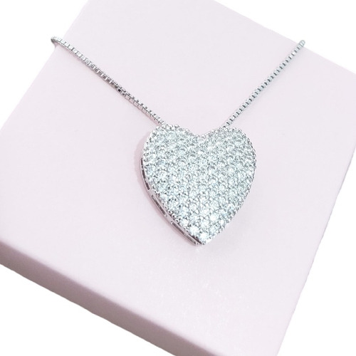 Colar Pedra Zirconia Coração Semijoia Presente Rodio Prata
