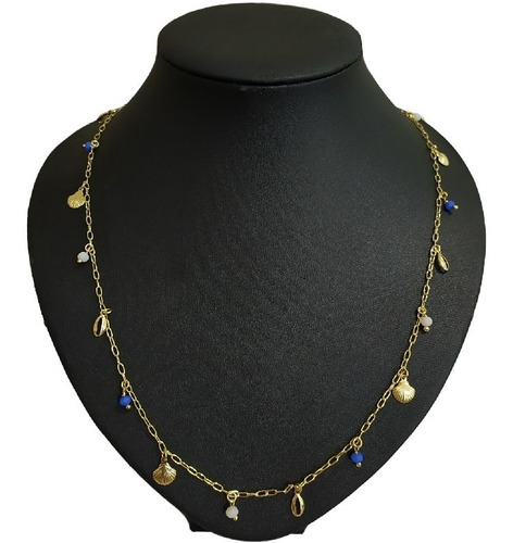 Colar banhado em ouro 18k, semi joia, com pingentes de búzios e conchas. Colar com 80 cm. Perfeito para composições! Com pedras lapidadas. Acompanha caixa de presente. Semi joia com garantia de 1 ano. Uma linda peça para ser usada nas ocasiões mais importantes de sua vida ou para presentear. Produto a pronta entrega.