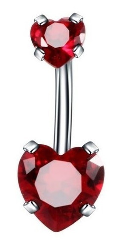 Piercing De Umbigo Prata 2 Coração Aço Cirúrgico Zircônia