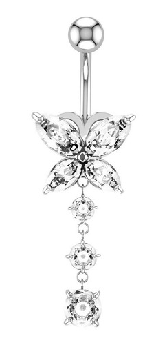 Piercing de umbigo com haste em aço cirúrgico e pingente banhado a prata. Pedras de zircônia em forma de borboleta, simplesmente LINDO!!!! Uma linda peça para ser usada no dia a dia e em qualquer ocasião. Produto a pronta entrega.