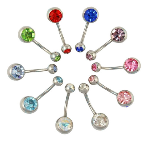 Piercing de umbigo em aço cirúrgico com duas pedras. Uma linda peça para ser usada no dia a dia e em qualquer ocasião. Anúncio referente a uma unidade de cada cor. São 10 unidades, um de cada cor! Produto a pronta entrega. Incluso: 10 Piercings Consulte o valor do frete logo abaixo do valor do produto. Acompanha saquinho de presente. VERIFIQUE A OPINIÃO DE QUEM COMPROU!!!