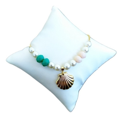 Pulseira Bracelete folheada com pingente de concha. Com perolas e pedras coloridas. Tamanho: ajustável (tipo gravatinha) Produto a pronta entrega. Acompanha caixa de presente. Produto com Nota Fiscal.