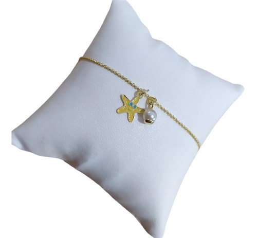 Pulseira infantil folheada a ouro 18k, com pingente de estrela do mar amarela e pérola. 14 cm de comprimento total. Produto com garantia. #presente #para #crianças