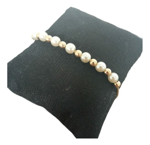 Pulseira Pérola Gravatinha Folheado A Ouro 18k Semi Joia