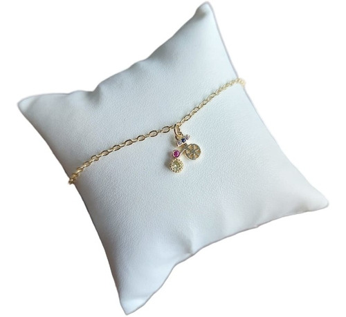 Tornozeleira folheada a ouro 18k com pingente de bicicleta com pedras de zirconia coloridas. Semi joia com garantia. 22 cm de comprimento + 5 cm de ajuste.